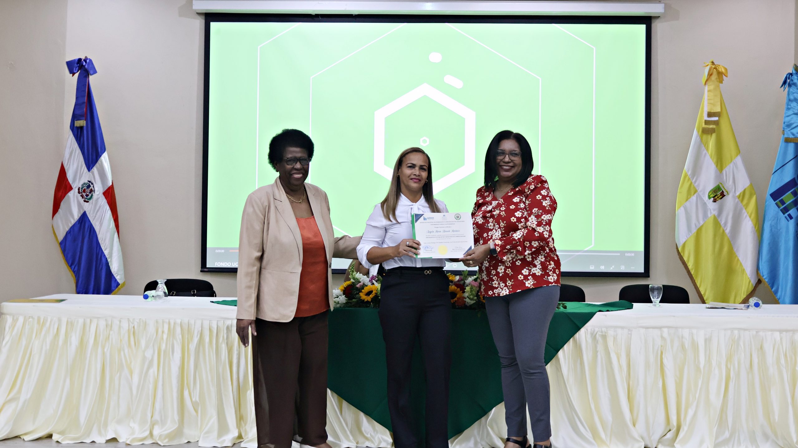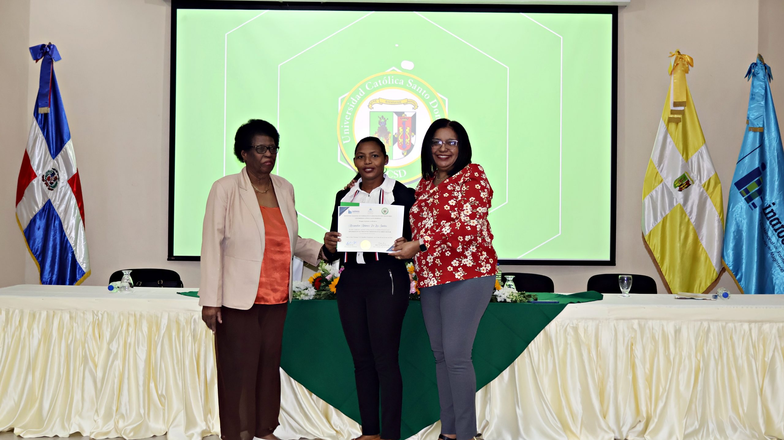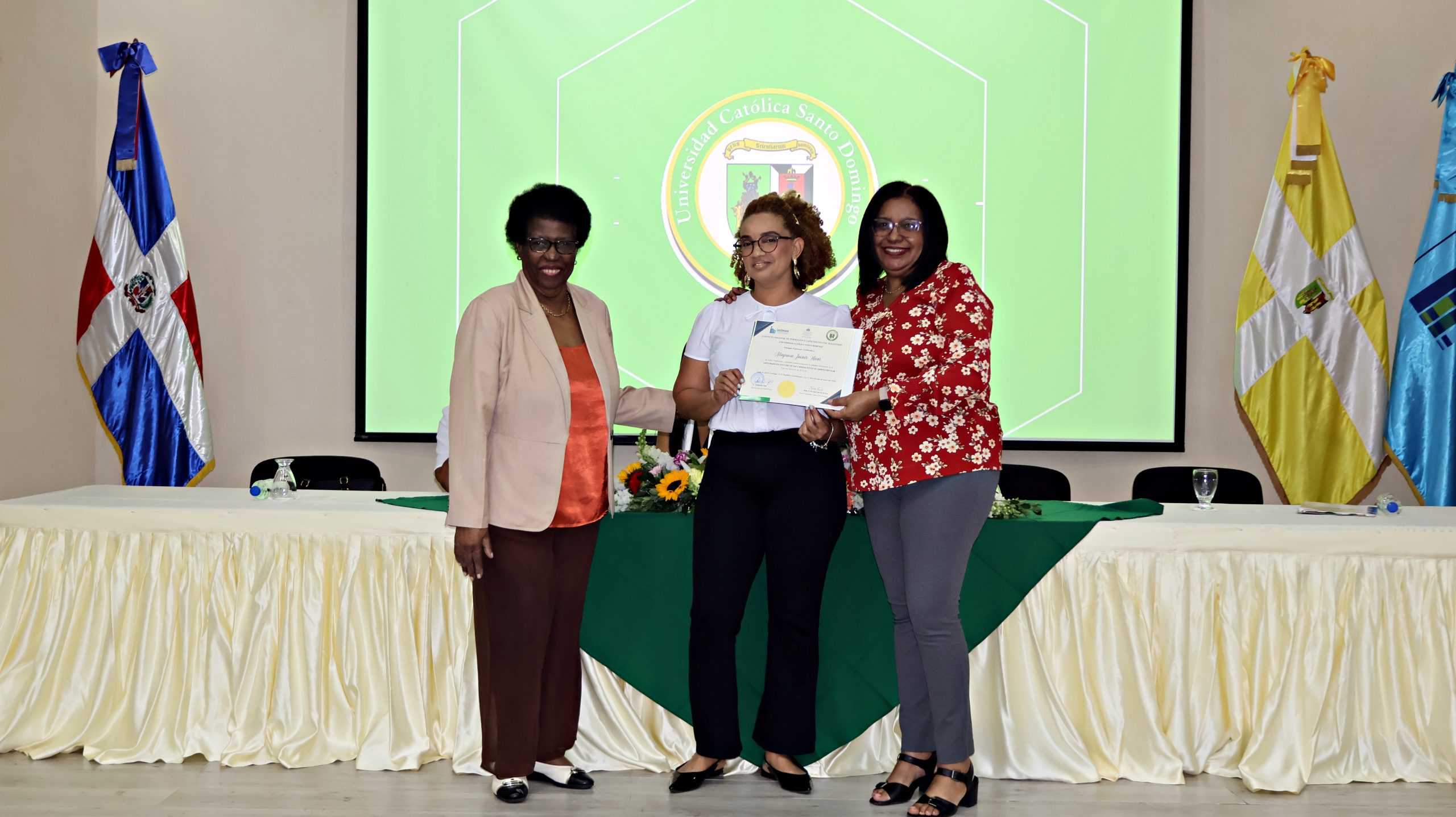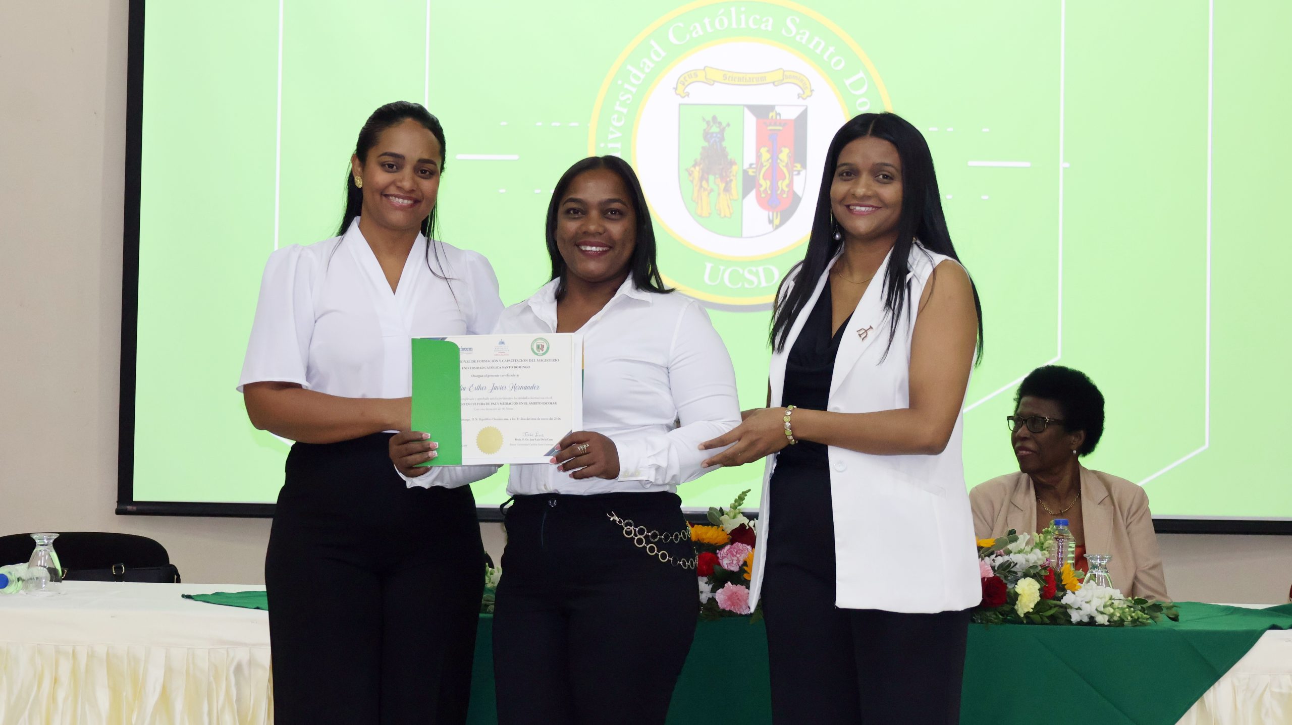 El evento destacó por un sólido compromiso institucional, contando con la presencia de figuras clave del sector educativo y académico como Luz González del INAFOCAM, Dilenia Vázquez del MINERD y Carmen Arelis Duval del viceministra de Asuntos Técnicos y Pedagógicos. Asimismo, la UCSD estuvo representada por la Dra. Celsa Albert Batista, directora de Postgrado y Educación Continuada, y Wanda Pascal, coordinadora general del diplomado, quienes junto al maestro Héctor Valera y la maestra Fanny Gracia, reafirmaron el liderazgo académico en la formación de mediadores escolares.