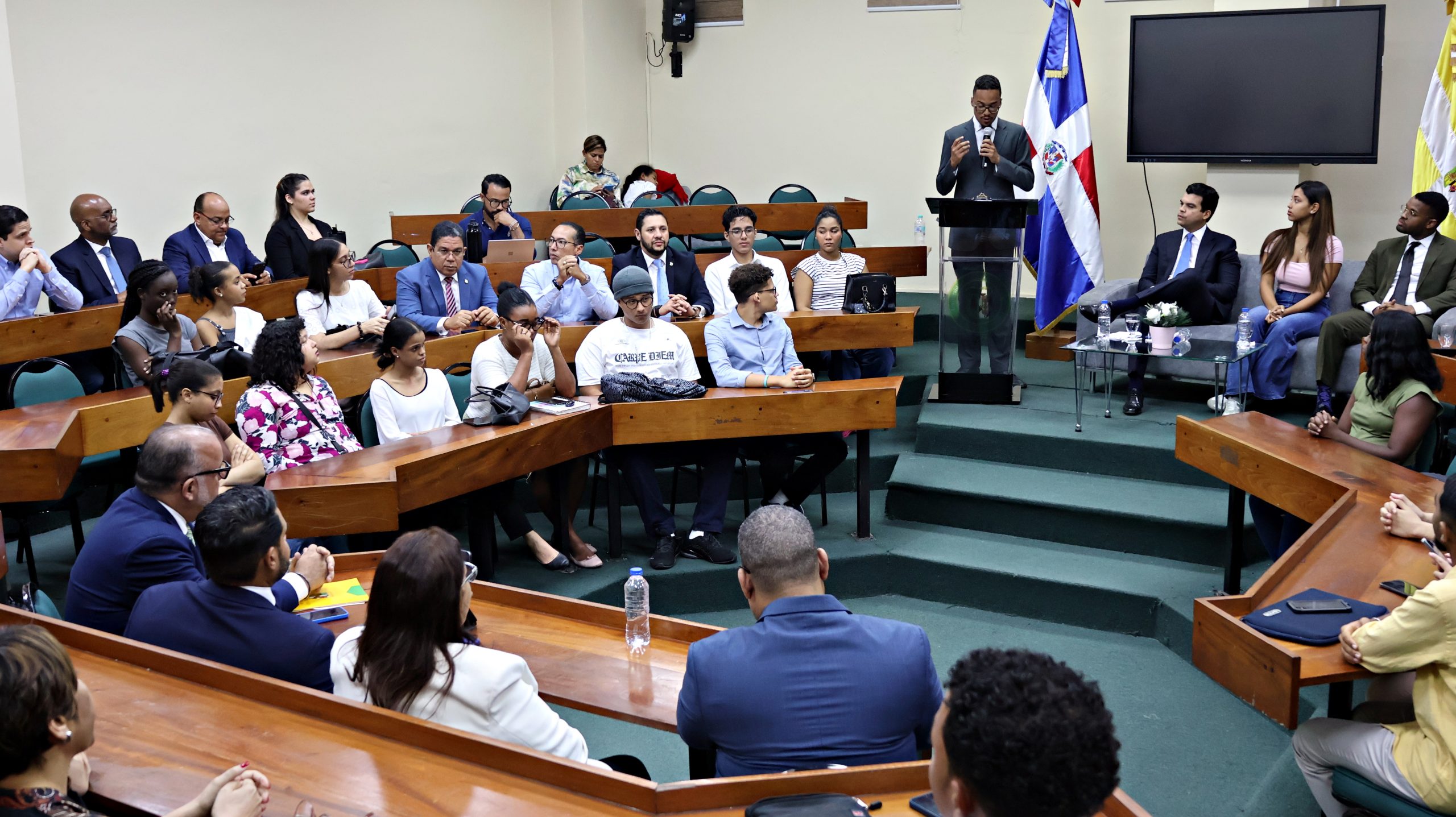 Tras las palabras de apertura, se procedió a la presentación formal del conferencista. Wellington Amín Arnaud Bisonó fue presentado como abogado, politólogo, exdiputado por el Distrito Nacional, y expresidente de la Comisión Permanente de Desarrollo Humano de la Cámara de Diputados.